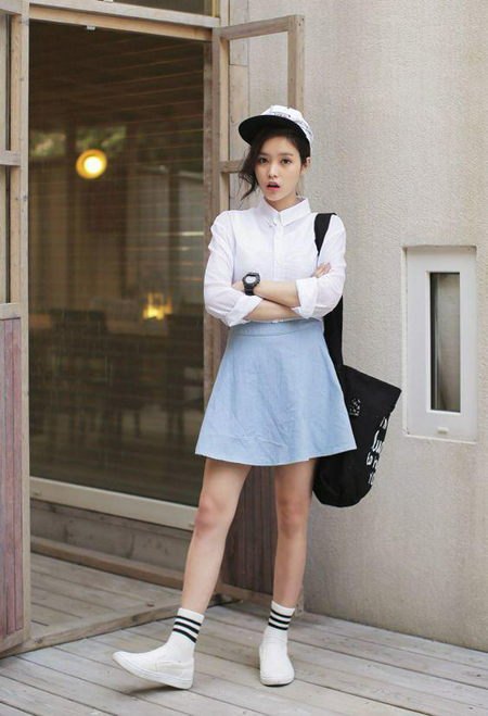 เป็นไอเดียการแมทช์ที่เบสิคมากๆ เลยนะคะ กับไอเดียการแมทช์ถุงเท้ากับรองเท้าผ้าใบ โดยถ้าสาวๆ คนไหนที่ชอบการใส่รองเท้าผ้าใบอยู่แล้ว เวลาที่เราใส่กระโปรงสั้น เดรสสั้น หรือกางเกงขาสั้น แล้วเลือกใส่รองเท้าผ้าใบล่ะก็ ลองแมทช์รองเท้ากับถุงเท้าที่ยาวประมาณหุ้มข้อดูสิ เพิ่มความ ชิค ความน่ารักได้อีกมากเลยแหละ ^^