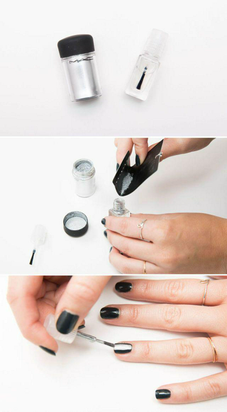 12.เอาผงพิกเมนต์ผสมกับน้ำยาท็อปโค้ทใสเขย่าให้เข้ากันดีแล้วใช้ทาเล็บได้เลย