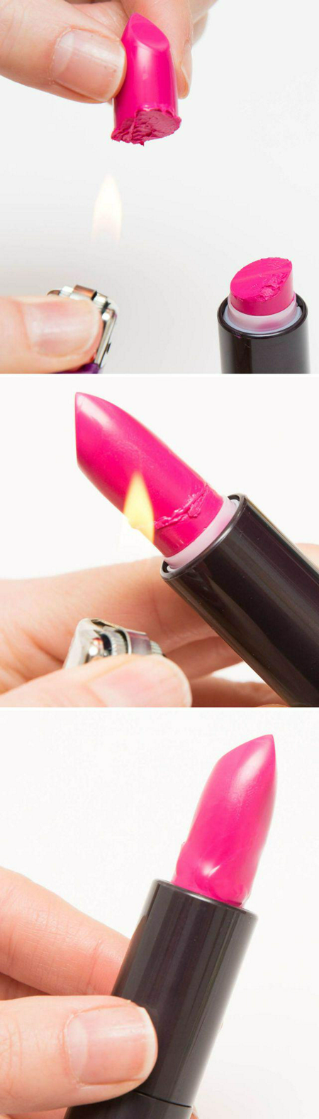 ลิปสติกหักเหรอ ไม่ต้องห่วง ใช้ไฟลนแล้วเอานิ้วถูๆ เพื่อลบรอยต่อสิ รับรองติดกันเหมือนเดิมแน่นอน