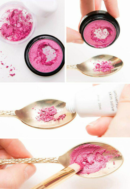 5. ถ้าอายแชโดว์จับตัวเป็นก้อนก็สามารถใช้แอลกอฮอล์ล้างแผลได้เช่นกันนะ ผสมๆ ลงไปแล้วใช้มือหรือช้อนกดให้เนื้อเนียนๆ แน่นๆ