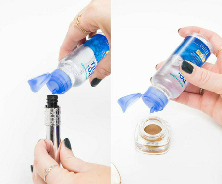 6. ส่วนมาสคาร่า เจลไลเนอร์หรือครีมชาโดว์ที่เริ่มจับตัวเป็นก้อนๆ ก็ใช้น้ำเกลือหยดลงไปซักเล็กน้อยให้พอละลายค่ะ