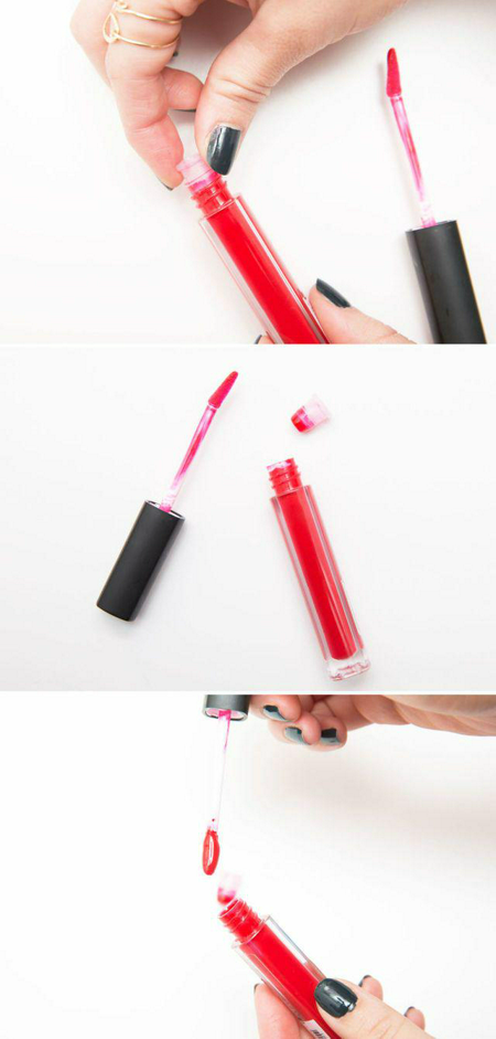 9.เมื่อลิปกลอสกำลังใกล้หมด ให้ดึงจุกยางตรงปากขวดออกซะเนื้อที่เหลือจะได้ไหลออกมาสะดวกขึ้น