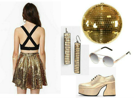 เอ? สาวๆ กำลังคิดกันสินะว่าแล้วจะแต่งตัวให้เขาธีมนี้ได้อย่างไร ไม่ยากเลย! เน้นเสื้อผ้าสีเมทัลลิกหรือสีค่อนข้างสดแต่ไม่ต้องถึงกับเรืองแสง เลือกเป็นกางเกงเข้ารูปหรือกระโปรงสั้นก็ได้เหมือนกัน หรือใครจะหยิบกางเกงขานั้นแบบแนบเนื้อมาเพิ่มความน่ารักก็ได้ แค่เน้นสีสันวิบวับให้เหมือนประหนึ่งกำลังเต้นอยู่ในดิสโก้เท่านั้นเอง ส่วนผมหากไม่ทำสีก็สามารถใช้เครื่องประดับแบบอลังการวังเวอร์ได้เลย