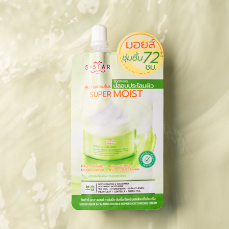 ช่วงหน้าหนาว อากาศแห้ง ๆ เนี่ย บอกเลยว่า มีโอกาสผิวแห้ง ผิวขาดน้ำได้ง่ายมาก ๆ เลย และถ้าเกิดว่าเพื่อน ๆ มีผิวบอบบาง ผิวอ่อนแออีกเนี่ย ยิ่งต้องรีบบำรุงกู้ผิวแข็งแรงกันด่วน ๆ ส่วนซิสต้าร์ซุปเปอร์มอยส์ตัวเด็ด สูตรกู้ผิวอ่อนแอ ขาดน้ำ ให้ผิวแข็งแรง ก็ต้องเป็น SISTAR Aqua & Calming Double Repair Moisturizing Cream ซุปเปอร์มอยส์ ซองสีเขียว ตัวช่วยปลอบประโลมผิวบอบบาง ลดการระคายเคือง เสริมผิวแข็งแรง และยังช่วยเติมน้ำในทุกชั้นผิว ให้ผิวชุ่มชื้นยาวนานอีกด้วย มาพร้อมกับสารบำรุงช่วยกู้ผิวแข็งแรงหลายชนิด ไม่ว่าจะเป็น