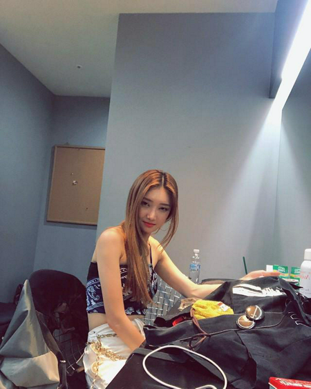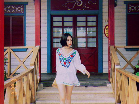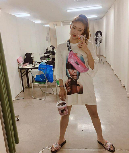 เดรสเสื้อยืดสีแดง ใส่มากับเข็มขัดรัดเอว หรือว่าสาว YG เค้านั้นเป็นสายแฟกันทุกคนคะ