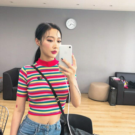 เสื้อครอปสีคัลเลอร์ฟูล แมทช์กางเกงยีนส์ อะไรมันจะต้องฮอตขนาดนี้