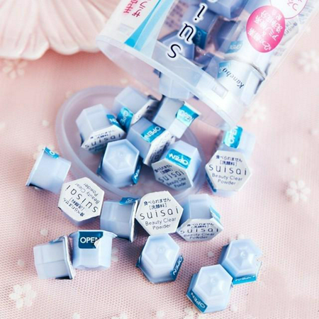 มาดูกันที่ไอเทมแรกที่สาวญี่ปุ่นแนะนำ ตัวนี้เป็นผงล้างหน้าเอนไซม์ที่ช่วยขจัดสิวหัวดำ สิ่งสกปรก สิวเสี้ยน เซลล์ผิวเก่าที่ตายแล้วและความหยาบกร้านให้หลุดออกไป ว่ากันว่าเป็นผลิตภัณฑ์ยอดขายอันดับ 1 ในประเทศญี่ปุ่นเลยนะ ไม่มีสี ไม่มีกลิ่น วิธีใช้ผงเอนไซม์ง่ายมาก ใช้เพียงแค่ 1 แคปซูล ต่อการล้างหน้า 1 ครั้ง ผสมน้ำอุณหภูมิปกติหรือน้ำอุ่นปริมาณเล็กน้อย ตีให้ขึ้นฟอง หรือจะใช้กับตาข่ายตีฟองก็ได้ เสร็จแล้วก็ล้างหน้าตามปกติ เท่านี้เองค่ะ เขาจะช่วยทำให้ผิวนุ่มลื่น เนียนกระจ่างใส พร้อมขจัดสิ่งสกปรกต่างๆ ได้อย่างหมดจดช่วยให้ผิวหน้าสะอาดและป้องกันการเกิดสิวได้ด้วย ทั้งยังช่วยปรับสภาพผิวหน้า ทำให้การลงสกินแคร์ซึมเข้าสู่ผิวได้ดียิ่งขึ้นเป็นไอเทมที่แปลกใหม่สำหรับเรามากๆ เลยนะ แต่มันก็น่าลองมากๆ ด้วย เดี๋ยวต้องไปลองตำมาใช้สักหน่อยละ