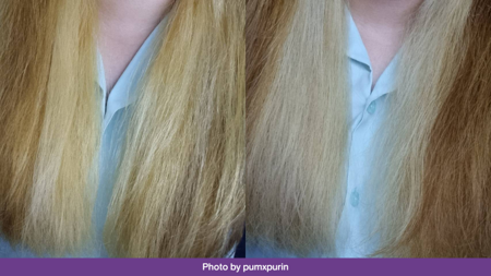 สรุปเลยก็คือแชมพูม่วงสามารถช่วยลดเม็ดสีเหลืองในเส้นผมและเพิ่มประกายหม่นได้จริง ๆ นะคะ โดยส่วนตัวก็เคยลองใช้ก็บอกเลยว่าเห็นผลจริง ๆ นะเออ อย่างในภาพด้านบนนี้เราก็ใช้แชมพูม่วงจะเห็นได้ชัดเลยว่ามีประกายหม่นลงชัดเจนเลย แต่สำคัญที่สุดก็ต้องเลือกให้เหมาะสมกับสีผมของเราด้วย อย่างผมสีเข้มเนี่ยไม่แนะนำเลย แต่ถ้าผมผ่านการฟอกสีหรือสีอ่อนอยู่ในระดับ 8 - 10 ก็แนะนำว่าใช้ได้เลย เพียงแค่อาจจะต้องรอให้มันเฟดออกอมเหลือง ๆ ก่อน โดยส่วนใหญ่ก็จะประมาณ 1 เดือน สีผมก็จะค่อย ๆ เฟดออกติดเหลืองบ้างแล้ว ตอนนั้นเราก็ค่อยใช้แชมพูม่วงได้ แต่แชมพูม่วงก็ไม่ได้ราคาเบาสบายกระเป๋าไปซะทุกตัว อีกทั้งเม็ดสีมันก็เข้ม/อ่อนไม่เท่ากันด้วย ดังนั้นแนะนำว่าใช้แค่ 1 - 2 ครั้งต่อสัปดาห์ก็พอแล้วก็สลับใช้กับแชมพูทำสีผมทั่วไปบ้าง นอกจากนี้ก็แนะนำให้ใช้พวกมาสก์ผมม่วงหรือคอนดิชันเนอร์ม่วงเพื่อเพิ่มความนุ่มชุ่มชื้นและลื่นไม่พันกันให้เส้นผมด้วย ผมของเราจะได้มีประกายหม่นรวมไปถึงเฉดสีผมจะได้ไม่เฟดหรือซีดจางไวด้วยน้า