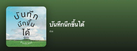 Finallyyy !!เราก็เดินทางมาถึงพอดแคสต์รายการสุดท้ายกันแล้ว กับพอดแคสต์ที่มีชื่อว่า"บันทึกนึกได้"ผู้ดำเนินรายการคือคุณปฐวี ธุระพันธ์หรือนามปากกาที่เรียกว่า"ง่วง"พอดแคสต์เรื่องนี้มีจุดเริ่มต้นมาจากเรื่องราวของคนผู้ชายคนหนึ่ง ที่ชอบในการอ่านหนังสือและจดบันทึกไดอารี่ จึงอยากที่จะมาบอกเล่าเรื่องราวที่นึกขึ้นได้ในแต่ละวัน ผ่านประสบการณ์ของตัวเองที่ได้เจอ ไม่ว่าจะเป็นเรื่องครอบครัว การใช้ชีวิตทุกสิ่งทุกอย่างล้วนเป็นสิ่งที่เราทุกคนต่างต้องเจอในแต่ละวัน ~~รายการนี้เป็นช่องที่ให้ฟิลลิ่งเหมือนเพื่อนที่มาระบายสิ่งต่างๆให้เราได้ฟังโดยได้ปลดปล่อยความรู้สึกต่างๆเพื่อให้ตัวเองรู้สึกดีขี้นซึ่งทำให้เราเข้าใจและอินไปกับสิ่งเหล่านั้น และพอดแคสต์จากบันทึกนึกได้ที่เรานำมาฝากเพื่อนๆ ในวันนี้คือ"สิ่งที่นึกขึ้นได้ในวันที่ต้องให้กำลังใจตัวเอง"