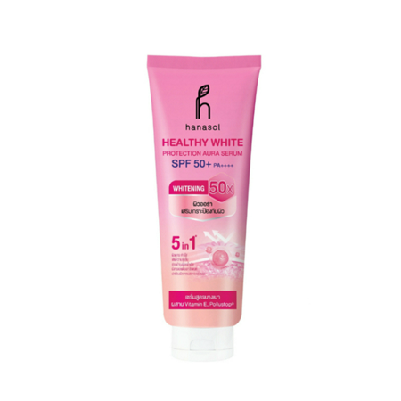Hanasol | ![]() | โลชั่นเซรั่มที่เน้นการซ่อมแซมผิวคล้ำเสียให้กลับมาดูสุขภาพดี ให้การปกป้องแดดในระดับสูงสุดพร้อมสารบำรุงที่เน้นการฟื้นฟูผิวอย่างล้ำลึก | เนื้อเซรั่มบางเบาซึมไวไม่เหนียวเหนอะหนะ กลิ่นหอมสดชื่นช่วยให้รู้สึกเฟรชตลอดวัน | 250 g. | 89-129 | |