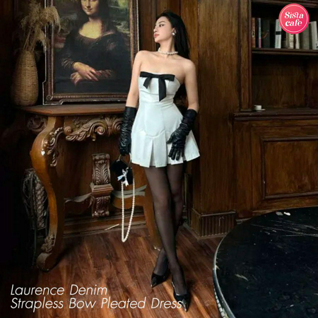 ชุดเดรสน่ารักสไตล์ลูกคุณ รุ่น Laurence Denim Strapless Bow Pleated
