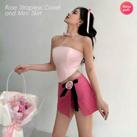 ชุดเซตสุดหวานฉ่ำ รุ่น Rosé Strapless Corset and Mini Skirt