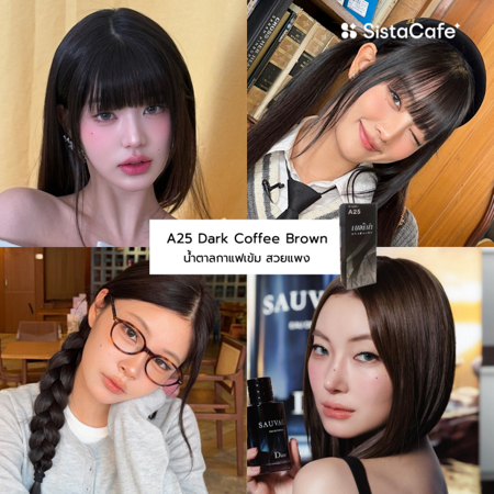 ใครชอบลุคเท่ๆแบบหวานได้ด้วย ต้องลองย้อมผมโทน Dark Coffee Brown เบอร์ A25 ตัวนี้ได้เลย โดยเป็นสีน้ำตาลเข้มลึกที่ดูสุขภาพดี และเงางามกว่าสีดำสนิท เข้าได้กับทุกสีผิว เหมาะกับลุคเรียบหรูและช่วยปิดผมขาวได้เนียน