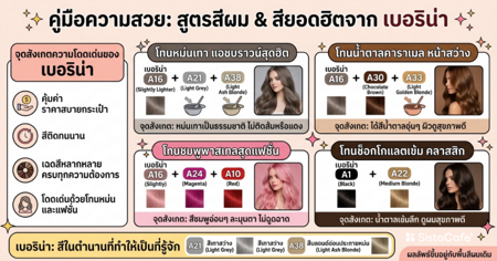 - เปิดกว้างเรื่อง "สูตรผสม": นี่คือเสน่ห์หลักเลยค่ะ เบอริน่าออกแบบมาให้ผสมกันได้ง่ายมาก (Mix & Match) จนเกิดเป็นสูตรลับฉบับช่างทำผมมากมาย เช่น สูตรสีนมเย็น สูตรสีเทาหม่น หรือสีชานม