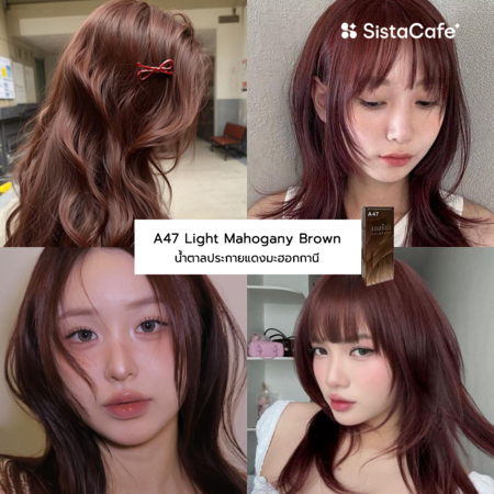 ปี 2025 นี้สีฮอกกานีออกแดงกำลังมาแรงมากๆ เป็นสิ่งที่สามารถยอมได้ทั้งผู้ชายและผู้หญิง ต้อนรับเดือน Pride Month ต้องเปลี่ยนมาย้อม A47 สีเบอริน่าน้ำตาลประกายแดงที่ดูหรูหรา มีมิติเวลาโดนแสงแดด ช่วยขับผิว คนผิวสองสีและผิวแทน ให้ดูคมเข้มและมีเสน่ห์