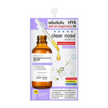 Clear Nose | ![]() | มีส่วนผสมของไฮยาลูรอน 8X ช่วยล็อกความชุ่มชื้น และสารสกัดจากดอกแซนด์ ลิลลี่ และมีวิตามินซี คอลลาเจน ช่วยลดเลือนรอยดำ ฟื้นบำรุงผิวโทรม | เซรั่ม | ทุกสภาพผิว (ผิวธรรมดา, ผิวแห้ง, ผิวมัน, ผิวผสม, และผิวแพ้ง่าย) โดยเฉพาะผู้ที่มีปัญหารอยดำรอยสิว จุดด่างดำ และต้องการปรับสีผิวให้สม่ำเสมอ | 7 g | 49 | |