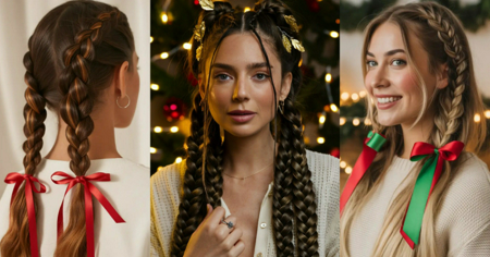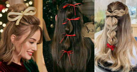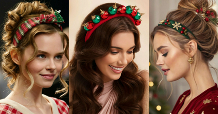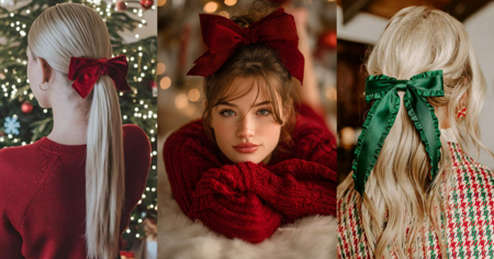 ปีนี้ โบว์ ยังคงเป็นดาวเด่น แต่จะเน้นโบว์เนื้อผ้าซาติน หรือกำมะหยี่ สีแดง ไวน์แดง ทอง หรือเขียวเข้ม ซึ่งเป็นสีที่สะท้อนแสงสวยมากเวลาถ่ายรูป วิธีทำง่ายมากคือ รวบผมหางม้าต่ำ หรือครึ่งหัว แล้วติดโบว์ใหญ่ชิ้นเดียวให้ดูเป็นจุดโฟกัส เหมาะกับคนที่อยากได้ลุคหวาน ดูโตเป็นผู้ใหญ่ขึ้นนิดนึง และออกงานกลางคืนก็ยังรอดอยู่