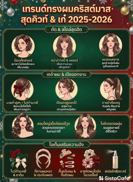 ไม่ว่าจะสายหวาน สายชิค หรือสายปาร์ตี้ ปีนี้มีไอเดีย ทรงผมคริสต์มาส 2025 ให้เลือกครบทุกสไตล์ แค่เพิ่มโบว์ กิ๊บ หรือ accessory เล็ก ๆ ก็ยกระดับลุคให้ festive และโดดเด่นได้ทันที เลือกทรงที่ใช่สำหรับตัวเอง แล้วปล่อยให้ผมเป็นจุดเด่นของคริสต์มาสปีนี้ สวยง่าย สนุกได้เต็มที่ พร้อมรับรอยยิ้มและคำชมจากทุกคน หวังว่าคริสต์มาสนี้จะเป็นเทศกาลแห่งความสุขของทุก ๆ คนนะคะ merry christmas ค่ะ