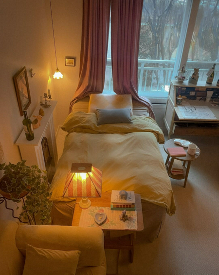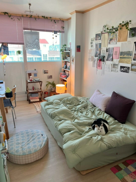 เน้นหน้าต่างหรือระเบียงที่กว้างเพื่อรับแสงจากด้านนอกเพิ่มความสว่างสดใส ไม่ทึบ ตกแต่งด้วยไฟ LED เส้น หรือไฟประดับให้ดูไม่น่าเบื่อ เน้นใช้สีขาวเป็นสีเบส เพิ่มสีตามสไตล์จากของตกแต่งต่าง ๆ ที่งอกขึ้นมาได้เรื่อย ๆ ฟีล ๆ หรือจะใช้สติ๊กเกอร์หรือแปะโปสเตอร์แทนการทาสี