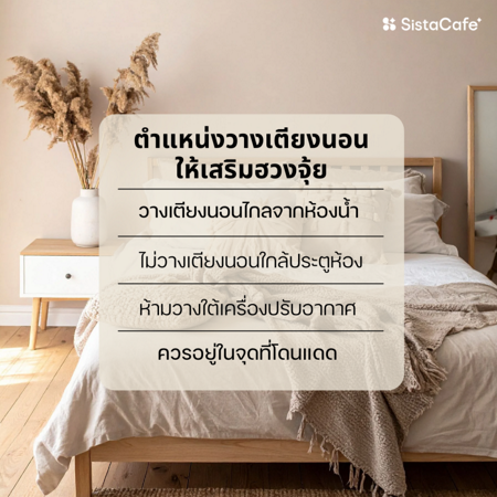 หรือถ้าเน้นในเรื่องของฮวงจุ้ย ก็มีให้เลือกตามความสะดวกใจได้นะ เช่น มุมโชคลาภอยู่ทางทิศตะวันออกเฉียงใต้ มุมความรักคู่รักอยู่ทางทิศตะวันตกเฉียงใต้ และยังสามารถวางของตกแต่งเล็ก ๆ เช่น โคมไฟอ่อน ๆ หรือต้นไม้เล็ก เพื่อเสริมพลังชี่ได้ นอกจากนี้สิ่งที่ควรคำนึงถึงในเรื่องของทิศคือการเลือกทิศและตำแหน่งฮวงจุ้ยที่ดี ต้องเน้นให้หัวเตียงมั่นคง มีหัวเตียงที่ไม่โงนเงนง่าย หลีกเลี่ยงการวางเตียงใกล้ประตูและหน้าต่าง และต้องเปิดรับแสงธรรมชาติอย่างพอดีค่ะ