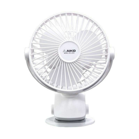 ถัดมาที่พัดลม AIKO พัดลมพกพาอเนกประสงค์ รุ่น KN-L2855 ใบพัด 4 นิ้ว โดดเด่นด้วยดีไซน์ 2-in-1 แบบหนีบและตั้งโต๊ะ แบตเตอรี่ลิเธียมในตัว ปรับแรงลมได้ 3 ระดับ ใช้งานต่อเนื่องได้นาน 1.5-4 ชั่วโมง สามารถชาร์จผ่านสาย USB ได้ หมุนคอได้ 360 องศา ขนาดเล็กกะทัดรัด ประหยัดพื้นที่ ถ้าดูจากดีไซน์ของเขา ขอบอกเลยว่า น่ารักมาก มีความเด็กน้อยสุดๆ