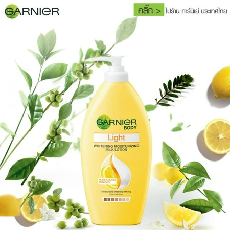 มาเริ่มกันที่GARNIER BODY LIGHT EXTRAเป็นครีมทาผิวของการ์นิเย่ ที่สาว ๆ หลายคนรู้จักกันดี โดยตัวสูตรสีเหลืองแบบนี้เนี่ย เป็นสูตรบำรุงผิว เพื่อผิวกระจ่างใส มีสารสกัดจากมะนาว ลดความหมองคล้ำ ลดเลือนจุดด่างดำ พร้อมกับป้องกันรังสี UVA และ UVB ด้วย เนื้อครีมไม่เหนียวเหนอะหนะ ซึมเข้าสู่ผิวได้เร็ว แถมยังเพิ่มความชุ่มชื้นให้ผิวอีกด้วยค่ะ