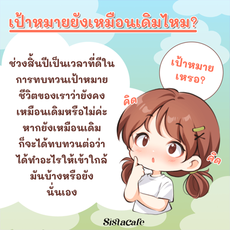 หรือถ้าสาว ๆ คนไหนได้ทบทวนตัวเองผ่านคำถามทบทวนตัวเองแล้วพบว่า" เป้าหมาย "ที่เคยตั้งไว้ไม่เหมือนเดิมอีกแล้วก็ไม่อยากให้สาว ๆ นึกเสียดายเวลาที่ผ่านไปค่ะ แต่อยากให้เริ่มโฟกัสที่เป้าหมายใหม่เลยว่าเราจะทำอย่างไรให้ไปถึงตรงนั้น ^^อยากให้ช่วงเทศกาลปีใหม่ เป็นช่วงเวลาที่สาว ๆ จะได้ทิ้งเรื่องที่ไม่ดีไว้ปีเก่าและพร้อมรับกับสิ่งใหม่ ๆ ที่จะเข้ามาในปีหน้านะคะขอให้ปีใหม่นี้เป็นช่วงเวลาที่สุขและน่าจดจำน้าาแล้วเจอกันค่า บ๊ายบายย ><