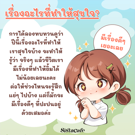 คงมีเรื่องดี ๆ และเรื่องแย่ ๆ ปะปนกันใช่ไหมคะ แต่นอกจากนั้นยังมีอะไรอีกบ้างไหมนะที่ควรทบทวน