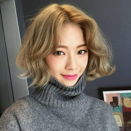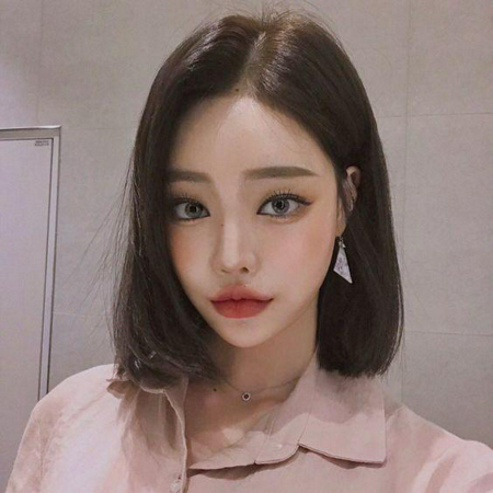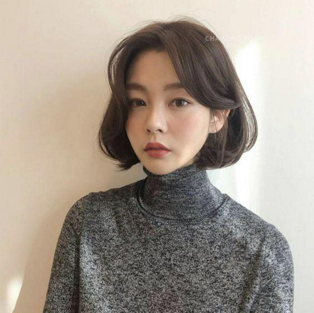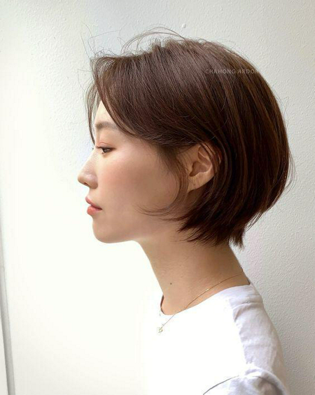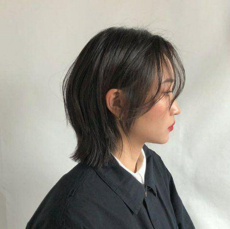 ผมสั้นตัดตรงสไลด์ปลายเล็กน้อยให้เข้ากับรูปหน้า