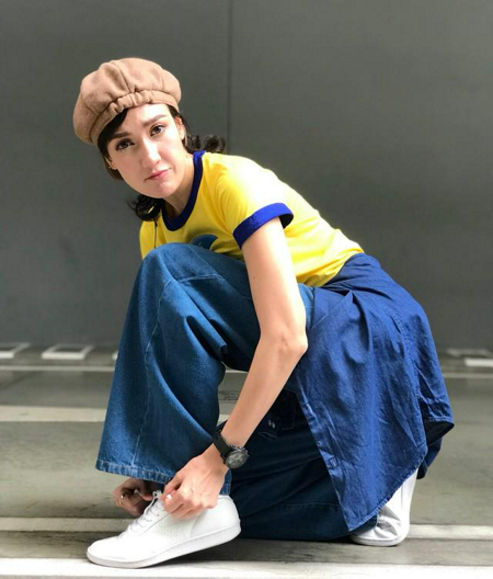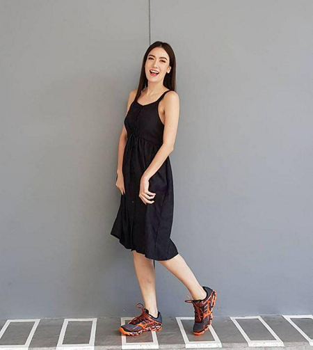 เดรสแขนกุดสีดำ กับรองเท้ากีฬา แมทช์เข้ากันได้ดีเลยทีเดียว