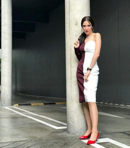 เดรสเกาะอกทูโทนสุดเปรี้ยว กับรองเท้าส้นสูงสีแดงแซ่บเวอร์