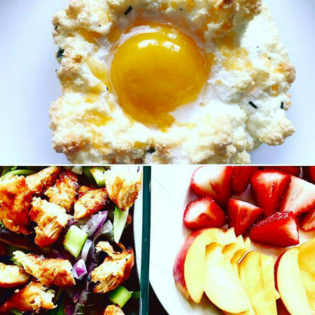 ไข่ดาวในก้อนเมฆ กินกับผักและเนื้อปลาแซลมอน