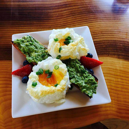 ไข่ดาวในก้อนเมฆกินคู่กับผลไม้ เช่น แอปเปิ้ลหรือสตรอว์เบอร์รี่