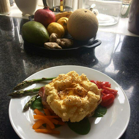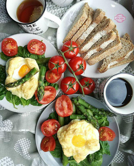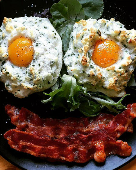 ไข่ดาวในก้อนเมฆแบบคลีนๆ เมื่อกินกับผักอย่างมะเขือเทศและกาแฟดำ