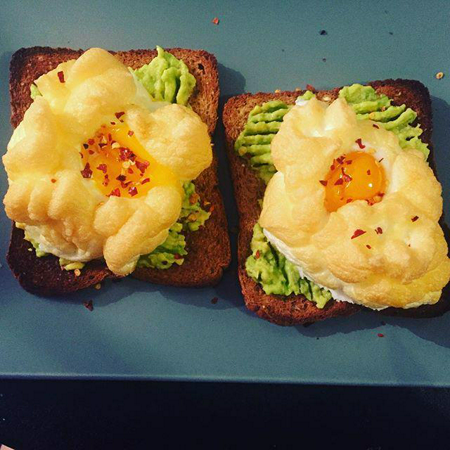 ไข่ดาวในก้อนเมฆกับขนมปังปิ้ง และโรยด้วยพริกเล็กน้อย