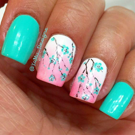 เป็นไงบ้างคะสาวๆ การเพ้นท์ลายดอกซากุระก็ไม่จำเป็นต้องเป็นโทนสีชมพูเสมอไป เพราะเราสามารถสร้างความหวานละมุนด้วยการใช้โทนสีพาสเทลอื่นๆ อย่างสีฟ้า และสีเขียวอ่อนๆ มาเพ้นท์ด้วยก็เป็นได้ นอกจากนี้ถ้าได้ไล่เฉดสีแบบอ่อนเข้มแล้ว ยังทำให้ลุคดูมีเสน่ห์แบบสุดๆ เลยล่ะค่ะ