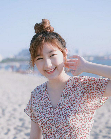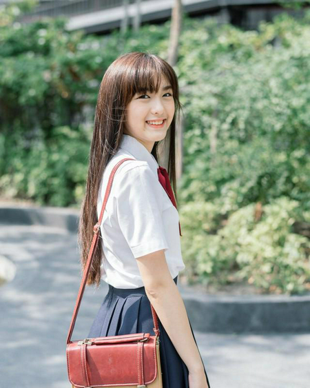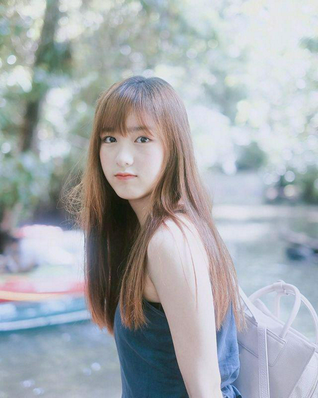น่ารักสดใส กับทรงผมยาวปล่อยตรง ๆ ดูเป็นธรรมชาติ พร้อมกับผมหน้าม้าตรงยิ่งทำให้ดูคิ้วท์ไปอีก