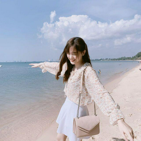 แมทช์เสื้อเชิ้ตแขนยาวลายปริ้นท์ดอกไม้เล็ก ๆ กับกระโปรงสั้นสีขาวเรียบ พร้อมสะพายกระเป๋าโทนสีครีมอ่อน ๆ ก็น่ารัก