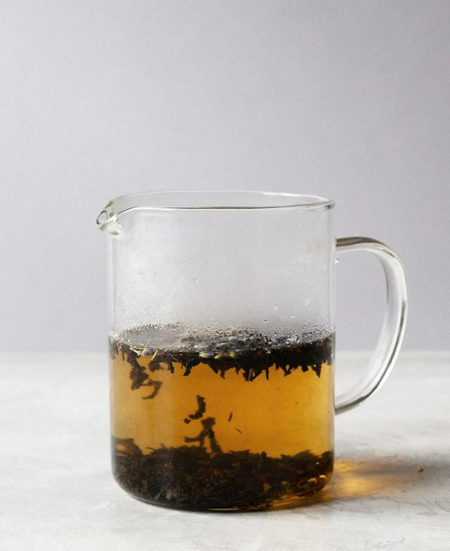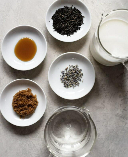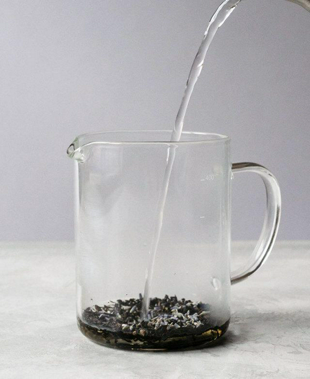 1. ใส่ใบชาเอิร์ลเกรย์กับดอกลาเวนเดอร์แห้งลงในภาชนะ แล้วเติมน้ำร้อนตามลงไป